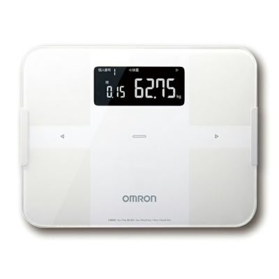 ■前回値表示で、体の変化をチェック測定結果は、前回の測定値と同時に表示されます。さらに、前回からの体重の増減差も表示されます。体重は50g単位でわかるので、小さな変化もひと目で確認できます。■iPhone/Androidスマートフォンアプリで、測定データを簡単管理Bluetooth通信機能を搭載。iPhone/Androidスマートフォン用のアプリ「OMRON connect(オムロンコネクト)」に測定データを転送し、体重や体脂肪率、骨格筋率などのデータを簡単に確認・管理することができます。測定後60分間以内は、アプリを立ち上げなくても、データは自動転送されます。※※本体とスマートフォンが通信可能な条件下(通信距離:5m、ただし、同一室内に本体と通信端末があり、そこに大きな障害物がない)にある場合。※推奨環境情報はメーカーサイトよりご確認ください。■本体の表示指標をカスタマイズアプリで、本体画面に表示される体脂肪率や骨格筋率などの体組成データの項目の順序を自分好みに設定できます。忙しい毎日でもカラダの状態を効率よく把握できます。■透明電極 ガラス天板のスマートデザイン透明電極とガラス天板で、ボタンや表示画面の凹凸もないフラットデザイン。■乗るだけで測定を開始■自動認識機能過去の測定結果から、登録ユーザーを自動認識します。■子どもアルゴリズム6歳から、体重・BMI・体脂肪率・基礎代謝・骨格筋率が測定できます。■体重引き算機能赤ちゃんやペットを抱いて測った合計体重と、自分だけで測った体重の差が表示されます。■本体記録メモリ*本体記録メモリ30回分(4人合計120回)。*スマートフォンアプリでのみ表示■Bluetooth通信機能搭載(「OMRON connect」対応)■iPhone/Androidスマートフォンアプリで、測定データを簡単管理■約4秒で測定完了■小さな変化もよくわかる、50g単位の体重測定■お手入れ簡単な透明電極&ガラス天板のフラットデザイン■両足測定■登録人数:4人分■体重:体重表示(50g単位)■体脂肪率・体脂肪率(0.1%単位)・体脂肪率判定(12段階)■骨格筋率・骨格筋率(0.1%単位)・骨格筋率判定(12段階)■内臓脂肪レベル・内臓脂肪レベル(1~30)・内臓脂肪レベル判定(9段階)■体年齢:体年齢表示(1才単位)■基礎代謝:基礎代謝表示■BMI:BMI表示■メモリ・表示メモリ 前回値・本体記録メモリ 30回分(4人合計120回)■通信機能:Bluetooth通信■子どもアルゴリズム:6歳から測定可能■電池寿命の目安:約6ヶ月