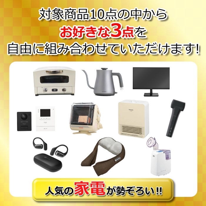 人気の家電10点の中からお好きな3点を自由に組み合わせていただけます!