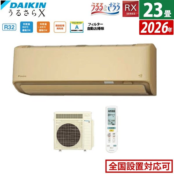 他の画像を見る 設置申込可!送料無料・アフター対応 エアコン 23畳用 ダイキン 7.1kW 200V RXシリーズ うるるとさらら うるさらX 2026年モデル S716ATRV-C-SET ベージュ 室外電源モデル 当店特別価格 ¥ 303,600 税込 設置申込可!送料無料・アフター対応 詳細を見る お気に入りに登録する