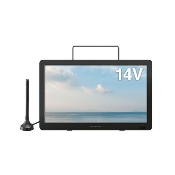 他の画像を見る 送料無料 グリーンハウス ポータブルテレビ 14インチ AC電源 バッテリ内蔵 充電対応 車載 HDMI搭載 GH-PTV14B-BK ブラック 当店特別価格 ¥ 15,800 税込 送料無料 カートに入れる お気に入りに登録する