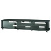 【フロアライフに最適な、ローポジションテレビ台】天板はブラック木目柄シート貼り仕上げ。両サイドはスリム感のあるラウンドフォルム透明強化ガラス扉。移動に便利なキャスター付■サイズ : 幅171 × 奥行38.6 × 高さ32.1cm■本体質量 : 約29kg■材質 : 木製■付属品 : 棚板3枚、キャスター受皿6枚、転倒防止ロープ■対応テレビサイズ : 60v~70v型対応■天板耐荷重 : 50kg■総耐荷重 : 約80kg■色 : ブラック■キャスター : 有
