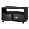 【上段オープンスペースの小型テレビ台】小型テレビにピッタリのテレビ台。天板奥行き29.6cmの超薄型設計。ガラス扉、移動に便利なキャスター付き。 ■サイズ : 幅64.4 × 奥行29.6 × 高さ37.7cm■本体質量 : 約10kg■材質 : 木製■付属品 : キャスター受皿4枚、転倒防止ロープ■対応テレビサイズ : 20v~28v型対応■天板耐荷重 : 20kg■総耐荷重 : 約40kg■色 : ブラック■キャスター : 有