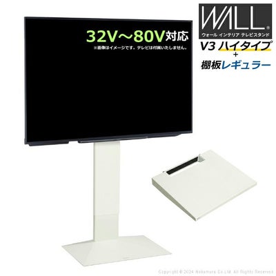 壁寄せ テレビ台 WALL テレビスタンド V3 ハイタイプ + 棚板レギュラーサイズ セット 32V~80V対応 WSTVH6-SW サテンホワイト