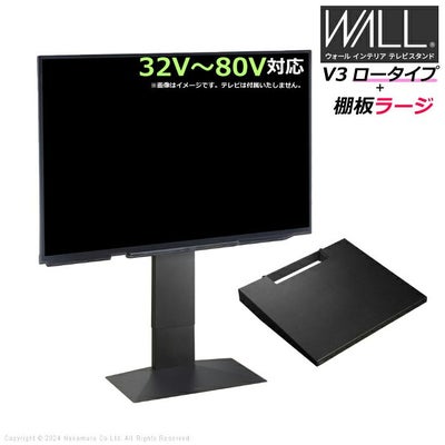 壁寄せ テレビ台 WALL テレビスタンド V3 ロータイプ + 棚板ラージサイズ セット 32V~80V対応 WSTVJ5-SB サテンブラック