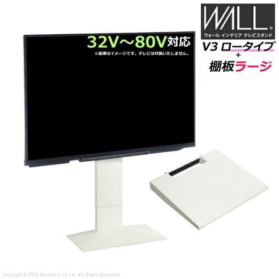 ■グッドデザイン賞受賞!WALL インテリアテレビスタンド【セット構成】本体:V3 ロータイプx1棚板:ラージサイズx1【仕様】■テレビスタンド本体スチール◎組立品■棚板スチール【サイズ】■テレビスタンド本体対応テレビサイズ:32~80インチ(50kg相当)まで幅70x奥行46x高さ102.5~122.5cm重量:約17kg高さ調節ピッチ:5cm(6段階)ベースサイズ:幅70x奥行46(39)cm・厚み:背面最大2.2cm 先端0.2cm■棚板幅47x奥行41.5x厚み(前/後)2/4.5cm重量:約4kg