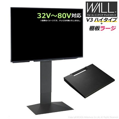 ■グッドデザイン賞受賞!WALL インテリアテレビスタンド【セット構成】本体:V3 ハイタイプx1棚板:ラージサイズx1【仕様】■テレビスタンド本体スチール◎組立品■棚板スチール【サイズ】■テレビスタンド本体対応テレビサイズ:80インチ(50kg相当)まで幅76x奥行52x高さ129.5~169.5cm重量:約21kg高さ調節ピッチ:5cm(9段階)ベースサイズ:幅76x奥行52(45)cm・厚み0.2~2.2mm■棚板幅47x奥行41.5x厚み(前/後)2/4.5cm重量:約4kg