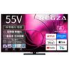 ■スマートでリッチな臨場感ハイグレード有機EL■仕様・パネル方式:4K有機ELパネル・画素数(水平×垂直):3840×2160 [4Kパネル]・画面寸法:幅 121.0cm,高さ 68.0cm,対角 138.8cm・外形寸法(スタンド付き):幅 122.5cm,高さ (低)74.3cm/(高)77.3cm,奥行 26.5cm・質量(スタンド含む/本体のみ):24.0kg/19.9kg・梱包箱寸法:幅 148.6cm,高さ 85.0cm,奥行 17.2cm・梱包時質量:31.0kg■消費電力・消費電力:357W (電源『待機』時 0.4W、機能動作時 18W)・年間消費電力量 ※1:184kWh/年・省エネ基準達成率 ※2:86% (2026年度基準)■チューナー・4K衛星放送 ※3:2・地上デジタル:3・BS・110度CSデジタル:3■高画質・映像処理エンジン:レグザエンジンZRα・超解像技術:AI超解像/AIナチュラル フォーカス テクノロジーPRO(AI構図推定)・美肌高画質:ナチュラルフェイストーンPRO・AI高画質:AIシーン高画質PRO (ネット動画・地デジ放送・HDMI入力映像)・ネット動画高画質:ネット動画ビューティPRO/ネット動画バンディングスムーサーPRO(地デジ放送・HDMI入力映像にも対応)/AIコンテンツ判別・アニメ高画質:アニメビューティPRO・地デジ高画質:地デジAIビューティPRO・自動映像調整機能:おまかせAIピクチャーPRO・ブルーライト制御:●・パネル:新開発 高コントラス有機EL・低反射:低反射 ARコート・広色域復元:3次元カラーリマスター・カラーイメージコントロール:36色軸リッチカラーイメージコントロール・倍速対応:●120Hz倍速(ゲームモード 144Hz VRR対応)・HDR高画質:HDRオプティマイザー/HDR復元/HDRリアライザー・HDR信号対応:・HDR10/・HLG HDR/・Dolby Vision/・HDR10+ (HDR 10+フォーマット対応)・HDR対応:●・クラウドAI高画質テクノロジー:●・プロユース映像設定機能:●・クラウドAI高画質連携:●■高音質・サウンドシステム/イコライザー:重低音立体音響システムX・Dolby Atmos:●・オーディオキャリブレーション:●・クリア音声:●・おまかせAIサウンド ※4:●・Bluetooth対応:●・レグザサウンドプロセスVIR:●・レグザサウンドリマスター:●・VIRイコライザー:●・高遮断クロスオーバーフィルター:●・音声実用最大出力(JEITA):合計 60W(同時駆動)/・2wayメインスピーカー (10W+10W)/・トップスピーカー(10W+10W)/・ウーファー(20W)・スピーカー(個数):・2wayメインスピーカー (フルレンジ 2個、ツィーター 2個)/・トップスピーカー(フルレンジ2個)/・ウーファー 1個/合計 7個■ネット動画・ネット連携■タイムシフトマシン・タイムシフトマシン [過去番組表] ※13:タイムシフトリンク●・始めにジャンプ ※13:タイムシフトリンク●■かんたん録画・USBハードディスク録画■端子・HDMI?入力端子:4(eARC/ARC ※16 )・HDMI?4K入力対応(18Gbps以下):3840×2160:60p/30p/24p・HDMI?2.1規格対応機能:4K144p ※17、4K120p ※17、VRR ※17、eARC ※16、ALLM・光デジタル音声出力端子:1・LAN端子[10BASE-T/100BASE-TX]:1・USB端子(通常録画専用):1(USB3.0、定格出力:DC 5V 900mA MAX)・USB端子(AV周辺機器専用):1(USB2.0、定格出力:DC 5V 900mA MAX)・ヘッドホン端子:1■付属品・単四形乾電池:●(2本)・レグザリモコン:●(CT-90507)・転倒防止バンド等:転倒防止用バンド 1本、転倒防止用ネジ(短) 1本・ネジ(長) 1本※ 本機は従来のB-CASカードに代わりACAS方式を採用していますのでB-CASカードの挿入口はありません。また、B-CASカードは付属しておりません。※ 本商品は、株式会社モリサワのフォント「UD新ゴR」、「UD新丸ゴR」、「UD新丸ゴB」を搭載しています。「UD新ゴR」、「UD新丸ゴR」、「UD新丸ゴB」は株式会社モリサワの商標であり、フォントデータの著作権は株式会社モリサワに帰属します。*1)「年間消費電力量」とは、省エネ法に基づいて、1日あたり5.1時間の平均視聴時間/18.9時間の待機時間(電子番組表取得時間を含む)で算出した、一年間に消費する電力量です。*2)「省エネ性マーク」は省エネ性能を表しており、省エネ基準達成製品は緑色、未達成製品は黄赤色になります。商品をお選びになる際のご参考にしてください。「達成率」は、省エネ法に定められた2026 年度基準に対する省エネルギー基準達成率を示すものです。*3) 8K放送の受信には対応していません。*4) 接続するBluetooth機器の操作方法については、ご使用になるBluetooth機器の取扱説明書をご覧ください。*5) 本機能のご利用にはインターネットへの接続が必要です。*6) 接続する機器によっては表示できない場合があります。*7) 本機能のご利用には、ホームネットワーク(LAN)を構築し、設定のうえ対応機器を接続する必要があります。*8) 本機能は、別売のタイムシフトマシン対応USBハードディスクへの録画や別売のUSBハードディスクへの通常録画、またはタイムシフトリンクで接続した別売のレグザタイムシフトマシン対応レコーダーや別売のタイムシフトマシン対応レグザに録画した番組が対象です。*9)機能によってはインターネットへの接続が必要です。*10) 全ての番組にシーン情報が用意されることを保証するものではありません。「シーン」「出演者」のご利用にはインターネットへの接続が必要です。*11) 本機能のご利用にはインターネッ