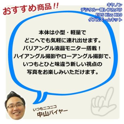 他の画像を見る 送料無料・代引き手数料無料 キヤノン デジタル一眼レフカメラ EOS Kiss X10 ダブルズームキット EOSKISSX10BK-WKIT ブラック CANON 当店特別価格 ¥ 144,800 税込 在庫切れ 送料無料・代引き手数料無料 詳細を見る お気に入りに登録する