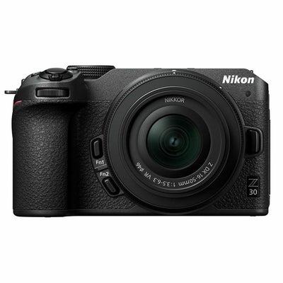 ◯Z 30 16-50 VR レンズキット・NIKKOR Z DX 16-50mm f/3.5-6.3 VR◯NIKKOR Z DX 16-50mm f/3.5-6.3 VRNIKKOR Zレンズの高性能を小型・軽量ボディーに凝縮。高画質を手軽に楽しめるDXフォーマット標準ズームレンズ質量約135 g、長さ※1約32 mm(沈胴時)と極めて携行性に優れた軽量・コンパクトボディー。広角16mmから中望遠50mmまで※2の使いやすいズーム範囲で、広い風景やスナップ、ポートレート、さらにテーブルフォト、花やアクセサリーのクローズアップなど、いろいろなシーン、被写体の撮影に対応します。4.5段※3の高い手ブレ補正効果を発揮する光学式VR機構を内蔵しており、光量の少ないシーンでも手持ちでアクティブに撮影できます。※1 レンズマウント基準面からレンズ先端まで。※2 画角は35mm判(FXフォーマット)換算で24-75mmレンズの画角に相当。※3 CIPA規格準拠。APS-Cサイズ相当(DXフォーマット)の撮像素子を搭載したカメラを使用し、カメラの手ブレ補正機能を[ノーマル]にしているとき。最も望遠側で測定。◯日常のVlog撮影からこだわりの撮影まで、幅広いシーンでの動画撮影に適した小型・軽量のミラーレスカメラ・APS-Cサイズ DXフォーマット・有効画素数 2088万画素・ISO感度 ISO 100-51200・高速連続撮影 約11コマ/秒(メカニカルシャッター使用、高速連続撮影(拡張時)、JPEGおよび12bit RAW記録時)・動画撮影 フルHD1080/120p・動画撮影 4K UHD30p・質量 約405g(バッテリーおよびSDカードを含み、ボディーキャップを除きます。)・SnapBridge・Wi-Fi内蔵・Bluetooth内蔵・タッチパネル・バリアングル式(左右、上下に可動するモニターを採用)【基本仕様】◯タイプ:ミラーレス◯レンズマウント:ニコン Zマウント◯画素数:2088万画素(有効画素):◯撮像素子:APS-C 23.5mm×15.7mm CMOS◯撮影感度・標準:ISO100~51200・拡張:ISO102400相当、204800相当◯記録フォーマット:JPEG/RAW(NEF)◯連写撮影・高速連続撮影:約5コマ/秒・高速連続撮影(拡張):約11コマ/秒:◯シャッタースピード:1/4000~30秒◯液晶モニター:3型(インチ) 104万ドット◯電池タイプ:専用電池◯専用電池型番:EN-EL25◯撮影枚数:液晶モニタ使用時:330枚◯記録メディア:・SDカード・SDHCカード・SDXCカード◯スロット:シングルスロット【その他機能】◯自分撮り機能:○◯タッチパネル:○◯タイムラプス:○◯ライブビュー:○◯可動式モニタ:バリアングル液晶◯USB充電:○◯RAW+JPEG同時記録:○◯バルブ:○◯RAW:12bit/14bit◯タイム:○◯セルフタイマー:20/10/5/2秒◯インターフェース:USB Type-C、HDMIマイクロ◯AFセンサー測距点:フォーカスポイント209点(静止画モード、撮像範囲DX、シングルポイントAF時)【動画撮影】◯4K対応:○◯動画記録画素数:4K(3840x2160) 29.97fps◯ファイル形式:MOV/MP4◯映像圧縮方式:H.264/MPEG-4 AVC◯音声記録方式:リニアPCM、AAC【ネットワーク】◯Wi-Fi:○◯Bluetooth:Bluetooth 4.2◯BLE(Bluetooth Low Energy):○【サイズ・重量】◯幅x高さx奥行き:128x73.5x59.5 mm◯重量:約405g(バッテリー、メモリーカードを含む)、約350g(本体のみ)