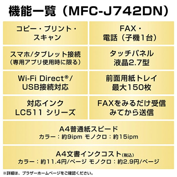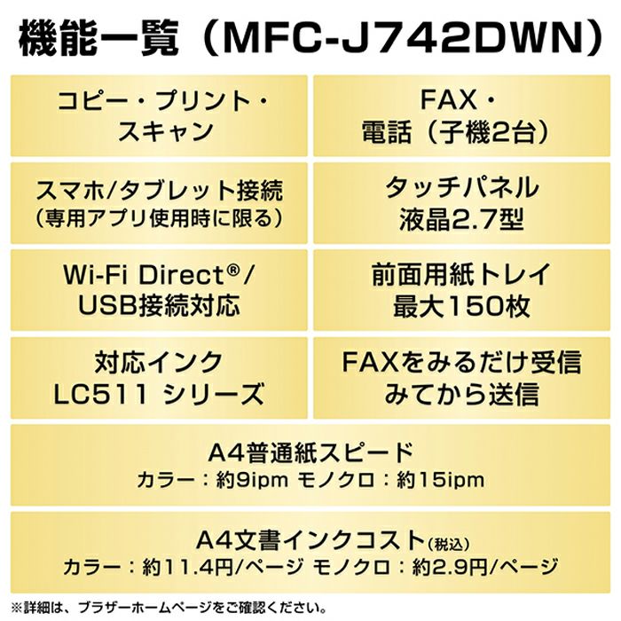 他の画像を見る 送料無料・代引き手数料無料 ブラザー プリンター PRIVIO プリビオ A4インクジェット複合機 MFC-J742DN ホワイト brother 当店特別価格 ¥ 26,975 税込 送料無料・代引き手数料無料 カートに入れる お気に入りに登録する