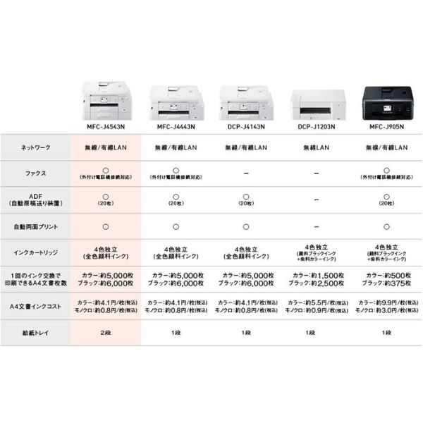 他の画像を見る 送料無料・代引き手数料無料 ブラザー プリンター A4対応 インクジェット複合機 大容量ファーストタンク PRIVIO プリビオ A4モデル MFC-J4543N 当店特別価格 ¥ 49,500 税込 送料無料・代引き手数料無料 カートに入れる お気に入りに登録する