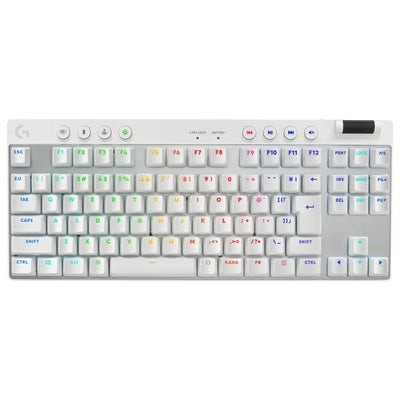 ■プロと共にデザイン。勝利のための設計。高成績を実証済みのパフォーマンスと安定したLIGHTSPEEDワイヤレスを実現する進化したPROキーボード。最高レベルの優位性のあるプレイを考慮して設計されたテンキーレス フォームファクターを装備。■LIGHTSPEEDワイヤレス最長50時間の電池寿命■複数の接続方法LIGHTSPEEDおよびBLUETOOTH■高成績を実証済みのLIGHTSPEEDワイヤレスパフォーマンス。速度。信頼性。トーナメントでテスト済みのLIGHTSPEEDワイヤレスパフォーマンスでプレイして勝利。アダプター1つで対応マウスとキーボードを簡単に接続可能。■カスタマイズとコントロールプログラマブルキー、RGBライト(LIGHTSYNC対応)、ゲームモードボタン、新しいゲームモードロック機能、メディアコントロールと音量ローラーなどが特徴です。PRO X TKLによって、勝利への道のりをコントロールできます。■勝利を導くプロが優勝を勝ち取るためのデザイン。ゲームモードコントロール、デュアルショットPBTキーキャップ、標準キーボードレイアウト(3P互換性)、LIGHTSPEED、Bluetooth、USBの接続性オプションを装備。■本体サイズ:高さ34mm×幅352mm×奥行き150mm■プロから着想を得たテンキーレス デザイン■LIGHTSYNC RGBライト ※高度な機能には、Logicool G HUBソフトウェアが必要です。■オンボード ライトプロファイル※高度な機能には、Logicool G HUBソフトウェアが必要です。■着脱式充電/データケーブル(1.8m)■1msのレポートレート■ワイヤレス・バッテリー寿命(充電式): 最長50時間 3使用状況により異なる場合があります。・ワイヤレス通信可能範囲: 最長10m ※使用状況により異なる場合があります■保証情報2年間無償保証■互換性Windows 10以降のPCおよびUSB 2.0ポート。インターネット接続環境(ロジクールG HUBソフトウェアに必要)。■同梱物・製品本体・USB LIGHTSPEEDアダプター・アダプターエクステンション・USB-A - USB-C充電/データケーブル・キャリングケース・保証書、保証規定