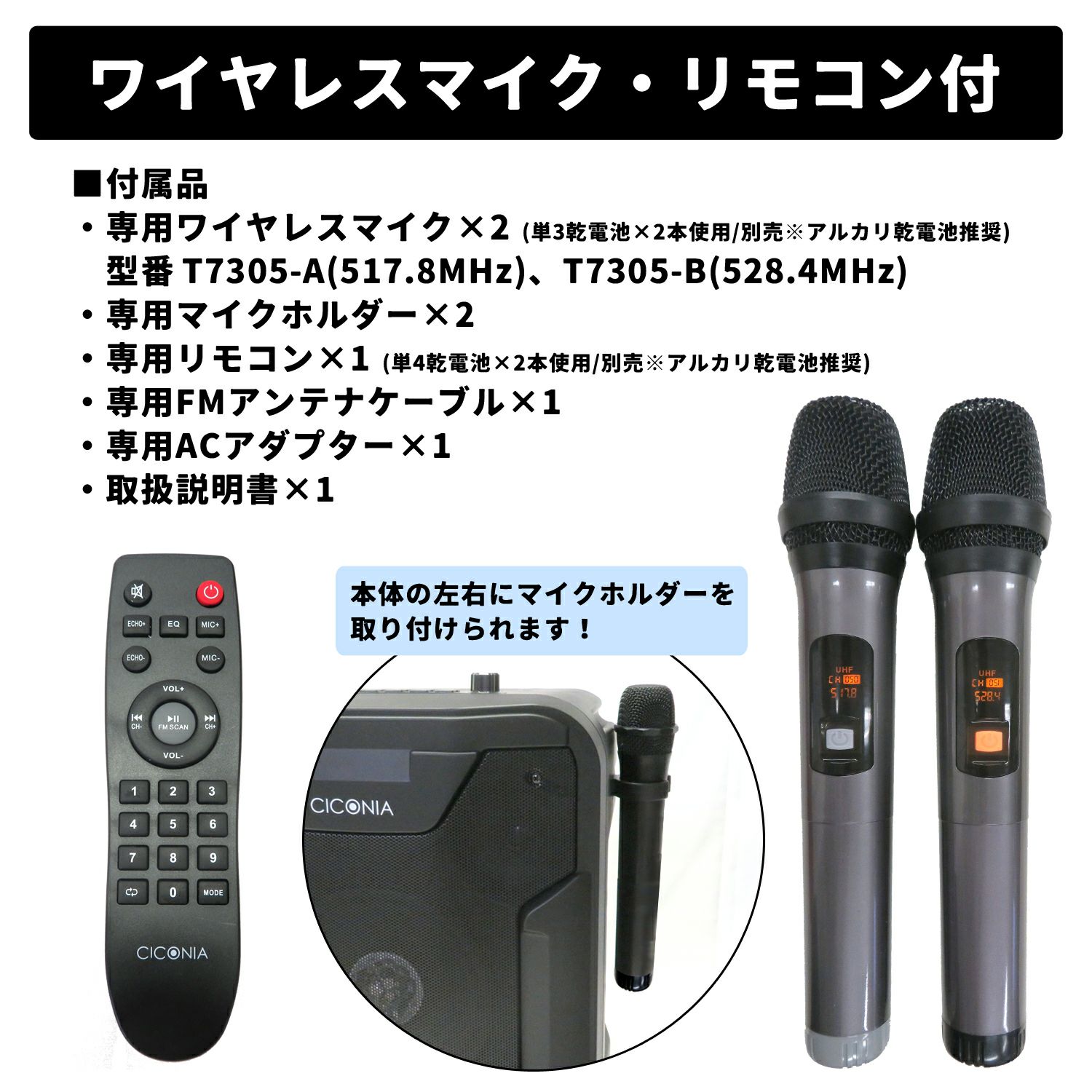 他の画像を見る 送料無料・代引き手数料無料 CICONIA チコニア ポータブルスピーカー ワイヤレスマイク2本付き TY-1900 当店特別価格 ¥ 24,800 税込 送料無料・代引き手数料無料 カートに入れる お気に入りに登録する