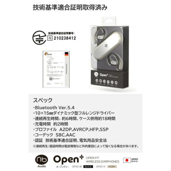 他の画像を見る 送料無料・代引き手数料無料 nb Audio オープンイヤー型 完全ワイヤレスイヤホン Open+ OPN1-BK ブラック 当店特別価格 ¥ 11,000 税込 送料無料・代引き手数料無料 カートに入れる お気に入りに登録する