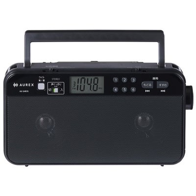 ■乾電池使用でも安心長持ち■大音量&高音質ステレオスピーカー搭載■おやすみタイマー付き■見やすいデカ文字&バックライト液晶■お好み選局ボタンでかんたん選局■ラジオ部・受信周波数:FM:76.0~108.0MHz AM:522~1,620kHz■共通部・電源:DC5V、DC4.5V(単2形乾電池×3本)・電池持続時間※1:東芝アルカリ乾電池(単2形乾電池×3本)(別売) / 内蔵スピーカー使用時* / FM受信:約140時間 AM受信:約160時間 / LEDライト点灯時間:(強)点灯時間:約200時間/(弱)点灯時間:約800時間 / 外部入力動作時間:約350時間(3mW+3mW出力時)・スピーカー:φ8.0cm(4Ω)×2・実用最大出力*:2000mW×2※2・入出力端子:外部入力:φ3.5mmステレオミニジャック / ヘッドホン出力:φ3.5mmステレオミニジャック・最大外形寸法:220(幅)×120(高さ)×55(奥行)mm(突起物含まず) / 229(幅)×121.5(高さ)×72(奥行)mm(突起物含む)・質量:約805g(乾電池含) / 約605g(乾電池含まず)・付属品:USB電源ケーブル、USB-ACアダプター、肩ベルト、取扱説明書(保証書付き)*は(一社)電子情報技術産業協会の定める「JEITA規格」による測定値です。※1:実際の電池持続時間は、周囲の温度や使用状況により、短くなることがあります。※2:乾電池使用時は1800mW×2。
