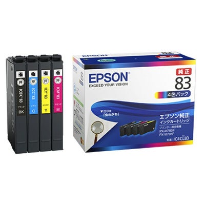 【仕様】■商品名:インクカートリッジ■対応機種:PX-M780F PX-M781F■内容:4色パック ICBK83(ブラック) ICC83(シアン) ICM83(マゼンタ) ICY83(イエロー)■目印:虫めがね