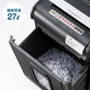 ■細断枚数:A4コピー用紙/最大20枚(1度に細断できる最大枚数)※負荷をかけずに細断できる枚数は18枚です。※A4コピー用紙64g/平方メートルが目安です。※10号針以下のホッチキス針をしたままの細断に対応しています。DVD・CD・カード/1枚