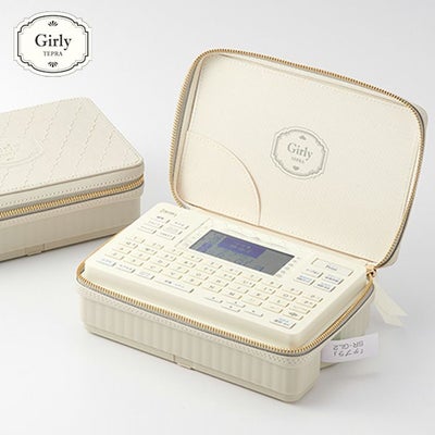 ■モロッカン調のエンボス加工を施した縫製カバーと「テプラ」本体を一体化し、女性らしく上品なデザインを採用し、コスメポーチのような上品な縫製カバーのデザイン