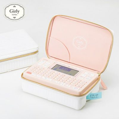 ■モロッカン調のエンボス加工を施した縫製カバーと「テプラ」本体を一体化し、女性らしく上品なデザインを採用し、コスメポーチのような上品な縫製カバーのデザイン