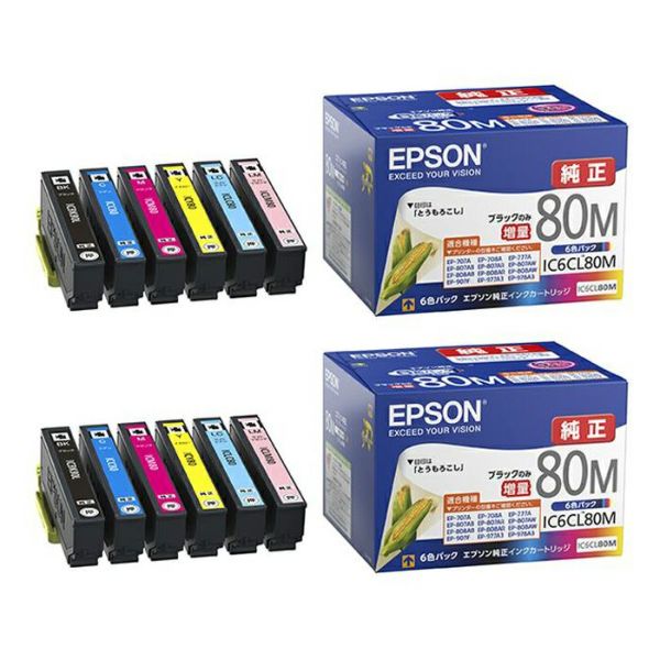 他の画像を見る 【2個セット】エプソン 純正 インクカートリッジ とうもろこし 6色パック IC6CL80M 2個セット IC6CL80M-2SET 当店特別価格 ¥ 10,980 税込 カートに入れる お気に入りに登録する