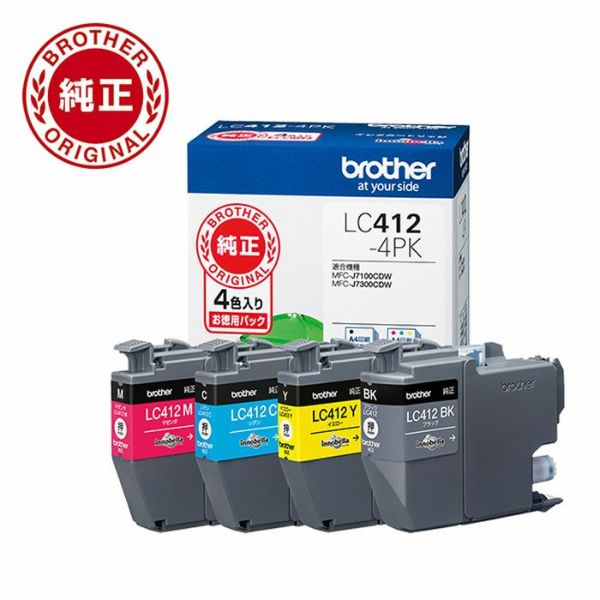 他の画像を見る 送料無料・代引き手数料無料 ブラザー 純正品 インクカートリッジ BK/C/M/Y 4色パック LC412-4PK 当店特別価格 ¥ 5,780 税込 送料無料・代引き手数料無料 カートに入れる お気に入りに登録する