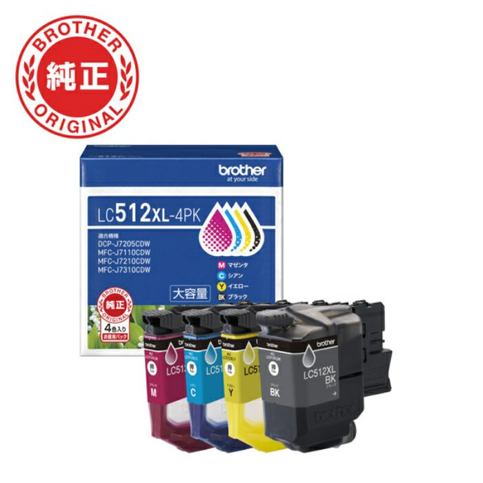 他の画像を見る 送料無料・代引き手数料無料 ブラザー brother 純正 LC512XL-4PK インクカートリッジ 4色パック ブラック シアン マゼンタ イエロー 当店特別価格 ¥ 14,180 税込 送料無料・代引き手数料無料 カートに入れる お気に入りに登録する