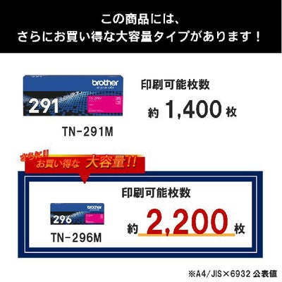 他の画像を見る 送料無料・代引き手数料無料 ブラザー 純正品 カラーレーザープリンター専用 トナーカートリッジ TN-291M マゼンタ 当店特別価格 ¥ 10,480 税込 送料無料・代引き手数料無料 カートに入れる お気に入りに登録する
