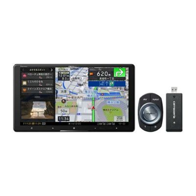 ■HDパネルを搭載し、HDMI入出力に対応したカーナビ(9V型ラージサイズ)。ネットワークスティックとスマートコマンダーを同梱。