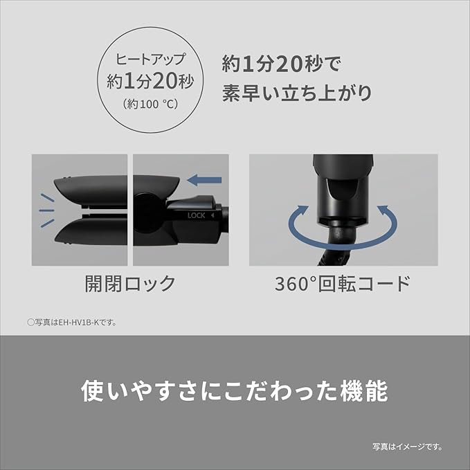 ■髪にツヤ感。「グロスコーティング」搭載。■旅行に持っていきやすいコンパクト&オートボルテージ■360° 回転式コード、開閉ロック付き。■電源方式:交流式■電源・電圧:AC100~240V(自動電圧切替付)50-60Hz■消費電力:20W■アイロン部温度:約160℃(100V時) / 約170℃(240V時)■ヒートアップ(約100℃):約1分20秒■仕上がり:ストレート / カール■海外使用:○※■コーティング:グロスコーティング■本体寸法:高さ24.2×幅2.91×奥行3.7 cm■質量:約265 g■コードの長さ:約1.7m(360° 回転式コード)■パッケージ寸法:高さ27.5×幅9.5×奥行4.6 cm※海外でご使用の場合には、国や地域に合わせて別途プラグアダプターをお買い求めください。