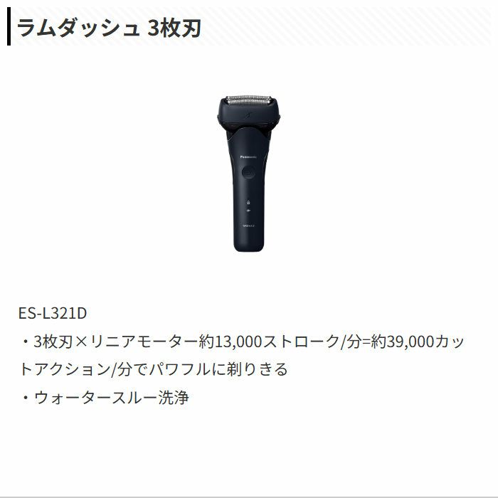 他の画像を見る 送料無料・代引き手数料無料・延長保証申込可 パナソニック メンズシェーバー 3枚刃 ラムダッシュ3 ACアダプター充電 ES-L321W-K ブラック 当店特別価格 ¥ 8,800 税込 送料無料・代引き手数料無料・延長保証申込可 カートに入れる お気に入りに登録する