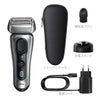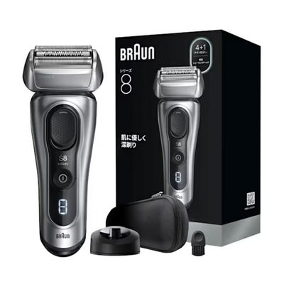 ■0.05mmの深剃り:ブラウンのプレミアムモデルSeries 8はブラウン独自の高い技術が集約された4+1カットシステムを搭載。正確で肌にやさしいシェービングを毎日実現。■究極の密着性:ブラウン最高峰のPRO密着ヘッド搭載で、肌に沿うようなシェービングを実現。前後40°に大きく動く上に、ヘッドがコンパクトだから剃りにくいアゴ下まで剃り残しゼロへ。■究極の肌へのやさしさ:最小ストロークの深剃りで、余分な往復による肌への負担を軽減し、肌へのやさしさも実現。さらに人工知能テクノロジーにより、毎秒160回の速さでヒゲの濃さを感知し、パワーを自動調整。薄いヒゲには出力を弱めてくれるので、さらに肌にやさしいシェービングへ。■ドイツ製の長持ち設計:Series 8は、高品質の素材を使用し、厳しい環境下における耐久テストを経て製造されています。100%防水設計で、お風呂剃りにも対応。また、リチウムイオン電池のため、最大60分使用可能です。■4+1カットシステム■キワぞり刃用プロトリマー■前後40°に動くPRO密着ヘッド:ヘッドが肌を沿うように動くので、剃りにくい箇所でも密着。アゴ下さえも、剃り残しゼロへ。■人工知能テクノロジー:毎秒160回、ヒゲの濃さを感知。濃さに応じてパワーを自動調整する人工知能テクノロジー搭載。薄いヒゲにはパワーを弱めてくれるので、肌にやさしいシェービングを実現。■シェーバーディスプレイ■100%防水設計:24時間の水中環境にも耐える耐久設計。お風呂ぞりやシェービングフォームの使用にも対応■最大60分駆動■最大駆動時間:60分■充電時間:60分■クイックチャージ:5分■シェーバー重量:約207g■シェーバー寸法:168×66×44mm■電圧:100-240 V■周波数:50-60 Hz■電池タイプ:リチウムイオン電池■対応替刃:F/C83M■同梱物:Series 8 シェーバー、シェーバーケース、充電スタンド、電源コード、掃除用ブラシ