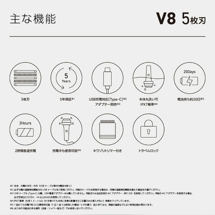 ※2 本体、付属の外刃、内刃(USB ケーブルなどの付属品を除く)