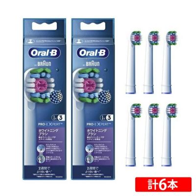■オーラルB 電動歯ブラシ用 替えブラシ EB18RX-3EL 3本入×2セット (計6本)■交換カラーシグナル付き ホワイトニングブラシ■スティンケア、特許取得の十字型のブラシの毛1本1本が歯の表面の細かい溝の歯垢までしっかりキャッチ、オーラルB史上最高の歯垢除去力を実現。