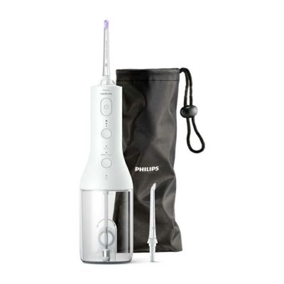 ■効果的に短時間で洗浄できる X 型水流X 型の 4 方向に広がる水流が歯間や歯と歯ぐきの間の汚れをしっかり除去。簡単に早く洗浄できます。■歯間移動ガイドが歯間から歯間に移るタイミングをお知らせ一定間隔で水圧の強弱が変化し、短い一時停止時間が挟まれるので、その間に次の歯間ノズルを移動させることができます。(ディープクリーンモードのみ)■2つのモード、3段階の強さ設定クリーンモード(標準水圧)とディープクリーンモード(一定間隔で強弱をつけた水流・歯間移動ガイドあり)の2つからモードを選べます。また、強さも3段階からお好みで選べます。■360度回転するノズルノズルが360度回転するため、本体をどの向きに持っても届きにくい場所まで洗浄できます。■USB充電ケーブルを使用した充電方式USB充電ケーブルを使用して簡単に充電。満充電で約3週間ご使用いただけます。(1日1回1分間使用した場合)■給水しやすい約 250ml タンク約250mlの水タンクには60秒の洗浄に十分な水が入ります。タンクを回して取り外すことで、水が簡単に補充でき、タンク内も洗えるため、衛生的に保つことができます。(タンクを外さなくても、サイドの注水口からも水が補充できます。)■使い方は簡単ノズルの先端を歯の間に当て、歯ぐきに沿ってスライドさせながら使います。当てるだけで歯間をしっかり効果的に洗浄できます。■スタンダードノズルジェット水流で食べかすや歯垢を取り除きます。■対応電圧:AC 100-240V (海外電圧対応)■本体保証:2年間保証■ハンドル:スリムなデザイン■ノズル装着方式:はめ込み式■クリーニング:クリーンモード(標準水圧で洗浄するモード)、ディープクリーンモード(一定間隔で水圧に強弱をつけて洗浄するモード)■内容・付属品・F1 スタンダードノズル・F3 カドストリームノズル・トラベルバッグ・USB 充電ケーブル・USB電源アダプター・ソニッケアーコードレスパワーフロッサー■モード・クリーン 標準水圧での洗浄・強さ 3 段階・ディープクリーン 一定間隔で水圧に強弱をつけて洗浄■同梱物・カドストリームノズル・標準ノズル・ソニッケアー コードレスパワーフロッサー3000・USB ケーブル・収納ケース