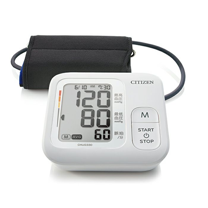 ■上腕式血圧計でありながら、持ち運びにも便利なコンパクトサイズ。操作もシンプルなので旅行や出張など外出先でも気軽に使用できます。■測定結果を日付・時刻とともに記録することができます。時計を常時表示させることもできますので、毎日同時刻に測定するなど、日々の健康管理に役立ちます。■カフの使いかたカフの青い帯を腕の内側に合わせて巻き、測定します。適用腕周範囲は22~32cmです。■メモリースイッチを押すと、記憶されたメモリーの最新3回分の平均値を表示します。最近のご自身の平均値と比べて、血圧値の変化がわかります。■不規則な脈間隔をマークでお知らせ測定中の脈の間隔が不規則な場合、測定終了後に「脈間隔変動マーク」でお知らせします。脈間隔変動マークが点灯した場合は、再測定をお勧めします。■測定中にからだや腕などが動いて、大きな圧力変化が検出された場合、測定中や測定終了後に「体動マーク」お知らせします。体動マークが点灯した場合は、再測定をお勧めします。■測定値を血圧分類表示測定された血圧値をWHO(世界保健機構)/ISH(国際高血圧学会)の血圧分類にもとづいて、6段階で表示します。■ニッケル水素充電池に対応繰り返し使えるニッケル水素充電池(別売り)に対応し、環境に配慮しました。※パナソニック製ニッケル水素充電池エネループまたは、充電式エボルタ対応(別売り)■測定方式:オシロメトリック法■測定部位:左腕(右上腕も可)■カフ(適用腕周範囲):ソフトカフ(範囲:22.0~32.0cm)■表示方式:デジタル表示■測定範囲:圧力:0~280mmHg、目量:1mmHg、脈拍:40~180拍/分■測定精度:圧力:±3mmHg、脈拍:読み取り数値の±5%■加圧:ポンプによる自動加圧■減圧:微速排気弁方式■排気:電磁弁による自動排気■定格及び電源:DC6V、単4形乾電池4本、または専用ACアダプター(別売りAC-230CZ-J1)、 / または単4形ニッケル水素充電池(エネループまたは充電式エボルタ)4本■電池寿命:アルカリ乾電池:約300回、マンガン乾電池:約150回 / ※モニター用電池をのぞく(1日1回測定、室温22℃、170mmHg加圧で測定の場合)■メモリー:60回分■質量:本体:約210g(電池含まず)、カフ(腕帯):約130g■寸法:約110(幅)×47(高さ)×104(奥行)mm■使用温湿度:10~40℃、相対湿度15~85%RH■保管温湿度:-20~60℃、相対湿度10~95%RH■付属品:カフ(腕帯)、単4形アルカリ乾電池4本(モニター用)、取扱説明書/保証書、医療機器添付文書、EMC技術資料■販売名:シチズン上腕式血圧計CHUGシリーズ■医療機器認証番号:231ADBZX00029000広告文責:株式会社ピーシーあきんどTEL:03-3835-1383メーカー(製造):シチズン区分:医療機器