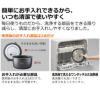 ◎コンパクトな5合炊き圧力IHジャー炊飯器■5合炊きなのにメーカー3合炊き※1より小さい設置面積 「コンパクト設計」なのに、「圧力」でふっくらおいしく■遠赤ダイヤモンドハードコート搭載でふっくら炊き上げ 「ダイヤモンド竈(かまど)釜(底面ディンプル)」■気になるお手入れをかんたんに『お手入れ部品たった2点』 「ワンタッチふた加熱板(食洗機対応)」「圧力お手入れ機能」搭載※1 2018年発売SR-JX058(幅24.3×奥行30.7cm)■炊飯容量:0.9L 0.5~5合■定格消費電力:1200W■消費電力量※1 炊飯時:121Wh/回 保温時:13.0Wh/h タイマー予約時:0.91Wh/h 待機時:0.84Wh/h■省エネ基準達成率 目標年度:2008年 達成率:104% 年間消費電力※1:50.1kWh/年■仕様 外形寸法(幅×奥行×高さ):25.5×27.3×23.3cm ふたを開けた時の高さ:43.0cm 質量:約4.4kg■炊飯 加熱方式:2段IH 圧力:○ ふた加熱板:○ インバーター:○■内釜 内釜:ダイヤモンド竃(かまど)釜 底面ディンプル:○(3列) 内面コート:遠赤ダイヤモンドハードコート(3年保証※2) 外面:60μm(黒色) 釜厚:2.2mm■美味しさ 美味しさの目安:★★★★ 炊き分け:食感炊き分け3種類(ふつう、かため、やわらか) メニュー数:[7メニュー] 白米・無洗米・玄米・雑穀米・炊き込み専用・炊きおこわ・おかゆ 白米 ・エコ炊飯:○ ・高速炊飯:○ ・炊込み:○ ・おかゆ:○ 玄米:ごはん ○(時短) 雑穀米:ごはん ○ 冷凍用ごはんコース:○ 調理コース ・自動 7 ・手動(調理/無水/塊肉専用低温) 無洗米(専用)コース:○ 浸し米炊飯:○ 旨み熟成浸水:○■保温・再加熱 いきいき保温:○ 保温経過時間表示:○ あつあつ再加熱:○■炊飯時間 エコ炊飯:44分 エコ炊飯 浸し米炊飯:25~32分 食感炊き分け ・ふつう:52分 ・ふつう 浸し米炊飯:29~39分 ・かため:48分 ・やわらか:56分 高速炊飯:22~30分 炊込み:52~56分 おかゆ:49~60分 玄米ごはん:75~87分 雑穀米ごはん:50~59分■清潔 ワンタッチふた加熱板(食洗機対応):○ フラット天面パネル:○ 圧力お手入れ(クリーニング)機能:○ 蒸気ふたレス:○■使いやすさ 液晶:反転バックライト液晶 タッチキー:○ 予約タイマー:2メモリー(自動調理1~5にも対応) 炊飯残時間表示:○■付属品:立つしゃもじ、計量カップ※1 省エネ法・特定機器「電気ジャー炊飯器」の測定方法による。※2 保証期間:本体お買い上げ日から ●本体1年間 ●内釜内面フッ素加工(遠赤ダイヤモンドハードコート)3年間 *ただし次の場合には保証期間内でも「有料」とさせていただきます。・一般家庭用以外に使用したとき・取扱説明書に記載した用途以外に使用したとき・取扱説明書の記載事項を守らなかったとき