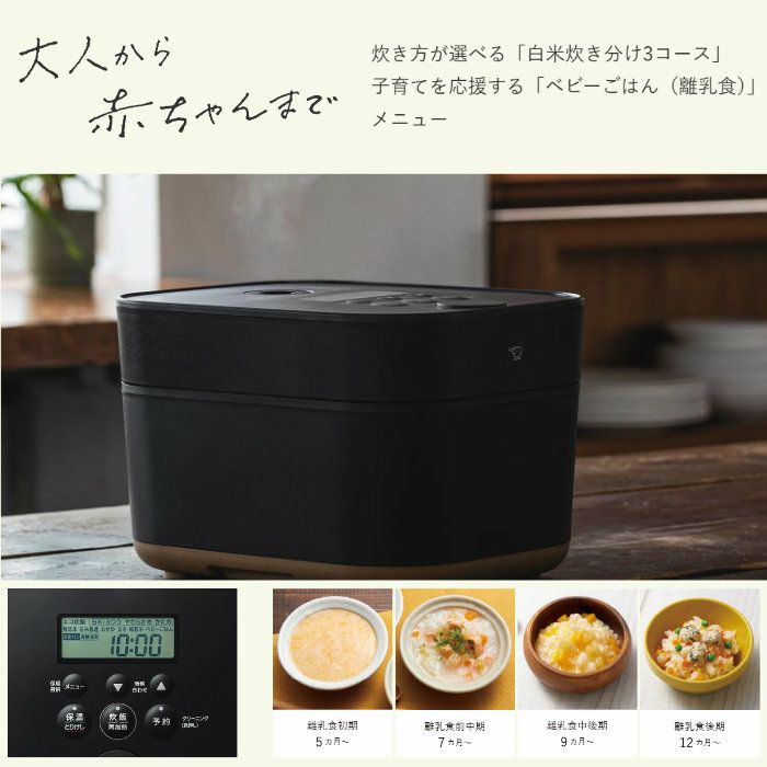 強火で炊き続けて、お米のうまみを引き出す炊飯ジャー。ごはんのおいしさはもちろん、ベビーごはんやお手入れのしやすさなど大人から赤ちゃんまでみんなに優しく。STAN.の炊飯ジャーで、あなたの暮らしにスタンバイ。【特長】◯おいしさについて強火で炊き続け、うまみを引き出す「豪熱沸とうIH」炊き方が選べる「白米炊き分け3コース」子育てを応援する「ベビーごはん(離乳食)」メニュー火力を高めた専用フローを採用し、子育て世帯にも嬉しいグルテンフリーの米粉パンも、もっちりおいしく出来上がります。選べる保温選択。30時間おいしく保温できる「うるつや保温」と長時間保温しない方におすすめの「高め保温」◯お手入れについて炊きこみごはんの後などニオイが気になる時に便利な「クリーニング」機能◯使いやすさについて水位が見やすく合わせやすい「はっきり目盛」置く場所に困らない「立つしゃもじ」つき◯その他機能黒まる厚釜(釜厚1.7mm)/全面加熱/あったか再加熱/時計式メモリータイマー(2種類)/お知らせメロディー※2/洗える内ぶた(食洗機対応)/洗米OK内釜◯ごはんメニュー白米(ふつう・やわらかめ・かため)/エコ炊飯※3/白米急速/炊きこみ※4/すしめし※4/おかゆ/おこわ※4/雑穀米/玄米/発芽玄米※4/無洗米/ベビーごはん(離乳食)※1 内釜のフッ素加工は3年間無償交換します。取扱説明書の記載事項にそわない使い方をされた場合は対象外です。※2 ブザー、メロディー、サイレントの切り替えができます。※3 エコ炊飯:175Wh/回、白米ふつう:238Wh/回 (条件)10サイズ3カップ 室温:23℃±2℃ 省エネ法・特定機器「電気ジャー炊飯器」の測定方法による。お買い上げ時は「エコ炊飯」メニューに設定されています。お好みに合わせて炊飯メニューをお選びください。※4 取扱説明書をご覧ください。【仕様】●最大炊飯容量区分※5:B●外形寸法(約cm):23.5×29×19.5(ふた開き時の高さ:42.5) ●炊飯時消費電力(W):1115●1回あたりの炊飯時消費電力(Wh):175※6 ●1時間あたりの保温時消費電力量(Wh):17.0※6●本体重量(約kg):4.2●電源コード(m):1.0
