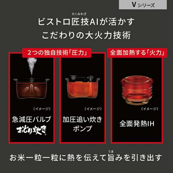 他の画像を見る 送料無料・代引き手数料無料・延長保証申込可 パナソニック 炊飯器 5.5合炊き 圧力IH炊飯器 ビストロ匠技AI 可変圧力IHジャー炊飯器 SR-V10BB-K ブラック 当店特別価格 ¥ 99,800 税込 送料無料・代引き手数料無料・延長保証申込可 カートに入れる お気に入りに登録する