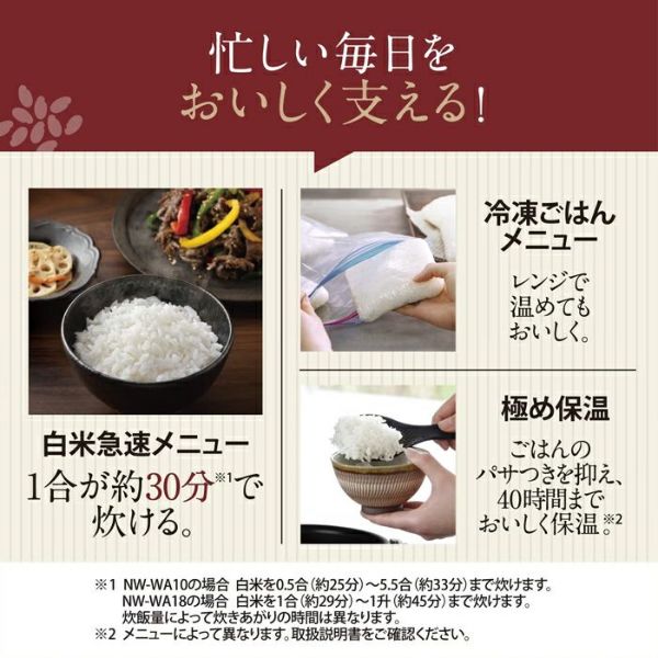 他の画像を見る 送料無料・代引き手数料無料・延長保証申込可 象印 炊飯器 1升炊き IH炊飯器 極め炊き IHタイプ NW-VJ型 NW-VJ18-BA ブラック 当店特別価格 ¥ 22,980 税込 送料無料・代引き手数料無料・延長保証申込可 カートに入れる お気に入りに登録する