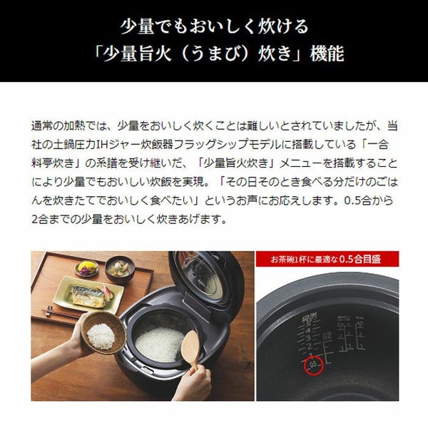 他の画像を見る 送料無料・代引き手数料無料 タイガー 炊飯器 5.5合炊き 土鍋圧力IHジャー炊飯器 炊きたて 土鍋ご泡火炊き JRX-G100-KG エボニーブラック 当店特別価格 ¥ 93,980 税込 在庫切れ 送料無料・代引き手数料無料 詳細を見る お気に入りに登録する