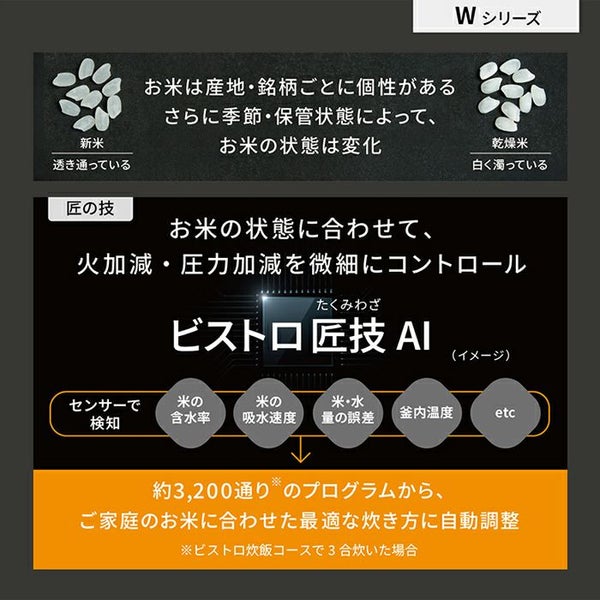 他の画像を見る 送料無料・代引き手数料無料・延長保証申込可 パナソニック 炊飯器 5.5合炊き 圧力IH炊飯器 ビストロ匠技AI 可変圧力IHジャー炊飯器 SR-W10BB-K ブラック 当店特別価格 ¥ 69,800 税込 在庫切れ 送料無料・代引き手数料無料・延長保証申込可 詳細を見る お気に入りに登録する