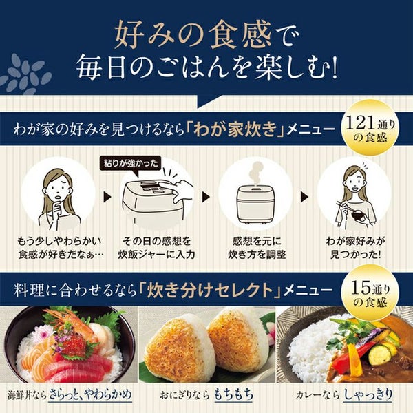 他の画像を見る 送料無料・代引き手数料無料・延長保証申込可 三菱電機 5.5合炊き 炊飯器 IH炊飯ジャー 備長炭コート 熾火 おきび 炭炊釜 NJ-VX10F-B 黒曜 当店特別価格 ¥ 48,980 税込 送料無料・代引き手数料無料・延長保証申込可 カートに入れる お気に入りに登録する