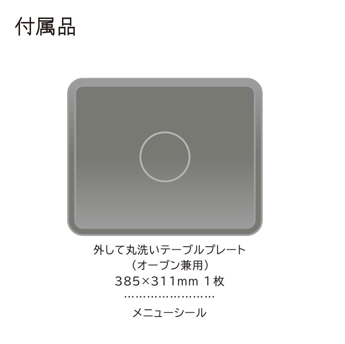 ■コンパクト、27Lワイド&フラット庫内■庫内幅39cm(※)のワイド庫内で大きなお皿やピザなどが出し入れしやすい。※庫内幅開口寸法■調理後の庫内お手入れがらくに。「らくメンテ」(※)※お手入れコース「清掃」はありません。庫内底面に、日立独自「外して丸洗いテーブルプレート」を採用。汚れても外して洗えるから清潔。セラミック製のテーブルプレートで調理後の汚れを落としやすく、お手入れも簡単です。庫内側面・背面には、汚れが落としやすシリコン系塗装を採用。庫内天面はヒーターが露出していない平面グリルのため、拭きやすく、お手入れラクラクです。■分量が同じ2品を適温にあたため「2品同時あたため」(※)※1品の分量は100-300gにしてください。※冷凍と常温、冷凍と冷蔵、冷凍と冷凍の組みあわせはできません。■おまかせで簡単オート調理日立独自(※)の「セラミックプレート」とレンジ・オーブンの複合加熱で、冷凍からもおまかせでおいしく焼き上げる「らくらくプレート焼き」■その他「ボウルメニュー」や「冷凍食品パリッと調理」「ノンフライ」なども搭載。■リベイク機能(時間手動設定)日立独自(※)の「セラミックプレート」とレンジ・グリルの複合加熱で、揚げ物や総菜パン、スイーツも、中はアツアツ、表面はサクッと仕上げます。※セラミック製の外して丸洗いテーブルプレートを庫内底面、上段、中段、下段にセットして直接調理に使用できます。■基本的な性能・総庫内容量・庫内形状:27L*1 ワイド&フラット庫内・センサー種類:温度センサー■加熱方式・レンジ 最高出力:1,000W*2(手動:最大3分間/自動:最大3分間)・オーブン/最高温度(自動):250℃※3・オーブン/方式:上下ヒーター式・オーブン/ヒーター:上下平面ヒーター・オーブン/段数:1段・オーブン:※3 短時間運転*5。・グリル:上下平面ヒーターグリル・スチーム:簡易スチーム式■メニュー・レシピ数:112*6・オートメニュー数:91*6・らくらくプレート焼き:26・ボウルメニュー:ボウルメニュー 15・スピードメニュー:14・ノンフライ:7・少人数メニュー:72・リベイク(時間手動設定):●■使いやすさ・2品同時あたため:●(冷凍と常温、冷凍と冷蔵、冷凍と冷凍は不可)・トースト(2枚まで):(オート:途中で裏返し)約8分・庫内灯:白熱球庫内灯×1灯・表示部:液晶(バックライトなし)・簡単操作:料理ボタン、リベイクボタン、トーストボタン■お手入れ・庫内底面:外して丸洗いテーブルプレート・庫内側面・背面・天面:汚れを落としやすい庫内側面・背面、お手入れしやすい平面グリルヒーター・コース:脱臭■寸法・質量/設置・本体外形寸法(ハンドル含む):幅483mm × 奥行388(440)mm × 高さ355mm・設置(設置時に確保する放熱スペース):背面 壁ピッタリ/左右4.5cm・上方10cm以上*7*8・庫内有効寸法(幅×奥行×高さ):375×323×213(mm)・質量:約14.5kg■基本仕様・性能・電源:AC100V(50-60Hz)・オーブン:出力:1,300W/消費電力:1,340W/温度調節:100~210℃・250℃(250℃は短時間出力*5)、発酵(30・35・40・45℃)・グリル:出力:1,300W/消費電力:1,340W・レンジ:手動出力:1,000W、600W、500W、200W相当、100W相当/消費電力(最高):1,450W・年間消費電力量:70.4kWh/年■付属品・外して丸洗いテーブルプレート(オーブン兼用) 385 × 311 mm 1枚・メニューシール*1 総庫内容量とは、JISの規定に基づいて算出された容量です。*2 短時間高出力機能です。オート調理の限定したメニューにのみ働きます。*3 240~300℃の運転時間は約5分間です。その後は自動的に230℃に切りかわります。300℃は予熱有り時のみ設定できます。*4 240~310℃の運転時間は約5分間です。その後は自動的に230℃に切りかわります。300℃、310℃は予熱有り時のみ設定できます。*5 250℃の運転時間は約5分間です。その後は自動的に210℃に切りかわります。*6 レシピ数はwebレシピ集に掲載されている材料・作り方の数です。オートメニュー数はあたため・解凍・下ゆでと応用メニューを含んだオートでできるメニューの数です。*7 本体と壁などとの間の必要寸法はあけてください。熱に弱い家具やコンセントがある壁面に排気を向けて設置する場合は変形するおそれがあるため遠ざけてください。コードは排気口や温度の高い部分に近づけないでください。冷蔵庫などの上に置く場合は耐熱100℃以上かをご確認ください。*8 壁にピッタリと設置できる商品でも、壁の材質によっては接触跡がついたり結露することがあります。壁面と本体の間を少しあけ、壁面側にアルミホイルを貼り、保護してください。後方にガラスがある場合、温度差で割れるおそれがあるので20cm以上あけてください。