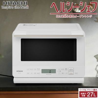 ◎コンパクト、27Lワイド&フラット庫内過熱水蒸気オーブンレンジ■コンパクト、27Lワイド&フラット庫内■過過熱水蒸気をつかった「ノンフライ」■忙しいときに役立つ、メインから副菜までおまかせメニュー。 おまかせで簡単オート調理■重さをはかるから、 あたためも解凍も、分量おまかせ■スイーツも焼き物も、手軽に作れる。 250℃オーブン1段■調理後の庫内お手入れがらくに。 らくメンテ≪基本的な性能≫■タイプ:過熱水蒸気 オーブンレンジ■総庫内容量・庫内形状:27L ワイド&フラット庫内■センサー種類:重量センサー+蒸気・温度センサー≪加熱方式≫■レンジ 最高出力:1,000W(手動:最大3分間/自動:最大3分間)■オーブン 最高温度(自動):250℃ 方式:上下ヒーター式 ヒーター:上下平面ヒーター 段数:1段■グリル:上下平面ヒーターグリル■スチーム:カップ式■過熱水蒸気:カップ式≪メニュー≫■レシピ数:111■オートメニュー数:89■ボウルメニュー:ボウルメニュー 20■スピードメニュー:19■ノンフライ:9≪使いやすさ≫■2品同時あたため:●(冷凍と常温、冷凍と冷蔵、冷凍と冷凍は不可)■トースト(2枚まで):(オート:途中で裏返し)約8分■庫内灯:白熱球庫内灯×1灯■表示部:液晶(バックライトなし)≪お手入れ≫■庫内底面:外して丸洗いテーブルプレート■庫内側面・背面・天面:汚れを落としやすい庫内側面・背面、お手入れしやすい平面グリルヒーター■コース:清掃・脱臭≪付属品/寸法・質量/設置≫■付属品:外して丸洗いテーブルプレート(オーブン兼用)385×311mm 1枚、スチーム小皿 1個、メニューシール■本体外形寸法(ハンドル含む)(幅×奥行×高さ):483×388(440)×355(mm)■設置(設置時に確保する放熱スペース) 背面 壁ピッタリ 左右4.5cm・上方10cm以上■庫内有効寸法(幅×奥行×高さ):375×323×213(mm)■質量:約14.8kg≪基本仕様・性能≫■電源:AC100V(50-60Hz)■オーブン 出力:1,300W 消費電力:1,340W 温度調節:100~210℃・250℃(250℃は短時間出力)、発酵(30・35・40・45℃)■グリル 出力:1,300W 消費電力:1,340W■レンジ 手動出力:1,000W、600W、500W、200W相当、100W相当 消費電力(最高):1,450W■年間消費電力量:70.4kWh/年