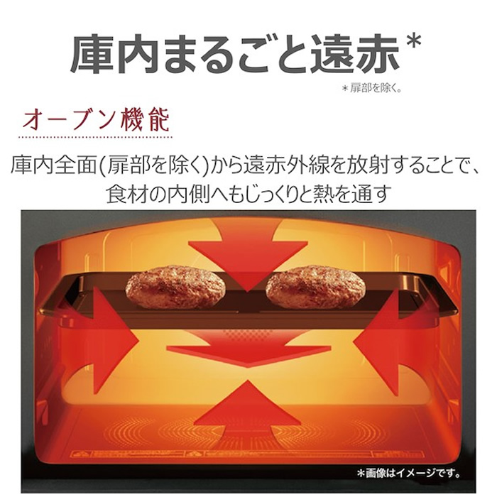 ◎ワイド&フラットでお手入れしやすい過熱水蒸気モデル■「石窯おまかせ焼き(鶏肉・野菜コース)」が新搭載! お好みの味を付けてならべるだけ。手軽においしく本格調理。■大皿料理の 出し入れもしやすい 「26Lワイド&フラット庫内」 間口39.7cmのひろびろワイド庫内で、お弁当や大皿料理などもスムーズに出し入れできます。■赤外線センサー(上面配置)で、食材をおいしくあたため。 食材の表面をしっかり検知。■「過熱水蒸気調理」で油や塩分をカットしてヘルシーに。 調理物食塩相当量[塩鮭]魚焼きグリル:3.7g、ER-D90A:2.9g 【分析依頼先】一般社団法人県央研究所 【分析試験成績書発行日及び番号】H31.2.20 第1770号、R4.8.9 第552号結果(魚焼きグリル2.8g/100g、過熱水蒸気2.2g/100g)より、メーカーにて2切分の食塩相当量を算出。数値は冷蔵の手動調理のものです。■溝付きで余分な脂を流し、容器が傾きにくい「ヘルシーフラット角皿」。■「冷凍から焼き物※」で解凍不要でおいしく焼き上げ。※取扱説明書[料理集]に掲載されているレシピに従って下ごしらえしたもの。市販の冷凍食品には対応していません。■専用付属品:ヘルシーフラット角皿(鉄板ホーロー・溝付き)39.5×30.5cm 1枚/取扱説明書 兼 料理集/(給水カセット・水受けは本体に装着済み)■外形寸法(mm):480(幅)×390(奥行)×350(高さ)*本体奥行にハンドルは含みません。 外形寸法は左右・背面・上面の突起等を含む寸法です。■設置寸法:背面 ピッタリ設置※1*左右3cm以上、上方は10cm以上あけてください。■質量(本体のみ):約17kg■基本仕様・性能 オーブン・グリル機能 消費電力(W)/ヒーター出力(W):1350/オーブン1350・グリル1100 レンジ機能 消費電力(W)/高周波出力(W):1430/1000:最大3分(600)※2■年間消費電力量※3 区分:70.4kWh/年(レンジ機能56.0kWh/年・オーブン機能14.4kWh/年・待機時0.0kWh/年)D:オーブンレンジ(ヒーターの露出があるもの以外で、30L未満のもの)※1 熱に弱い壁・家電製品・家具・コンセントがある場合は記載寸法以上にすき間をあけて置いてください。また、コンセントが排気口の近くにあったり、よごれが気になるときも、排気が直接当たらないように記載寸法以上にすき間をあけて置いてください。後方がガラスの場合、温度差で割れる恐れがあるので、20cm以上あけてください。※2 定格高周波出力1000Wは短時間高出力機能(最大3分)であり、定格連続高周波出力は600Wです。600Wへは自動的に切り換わります。※3 年間消費電力量は、省エネ法・特定機器「電子レンジ」測定方法による数値です(区分名も同法に基づいています)。