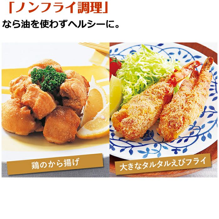 ◎ワイド&フラットな角皿式スチームモデル■「赤外線センサー」でお好み温度あたため。■「ノンフライ調理」なら油を使わずヘルシーに。■「おつまみ1分メニュー」ならスピーディーに1品つくれる。 食材と調味料をひとつのボウルに入れてスタートするだけ。■専用付属品:角皿(鉄板ホーロー)38.8×30cm 1枚/取扱説明書 兼 料理集/(水受けは本体に装着済み)■外形寸法(mm):480(幅)×390(奥行)×350(高さ) *本体奥行きにハンドルは含みません。■庫内有効寸法(幅×奥行×高さ(mm)):376×320×198■質量(本体のみ):約14kg■基本仕様・性能 オーブン・グリル機能 消費電力(W)/ヒーター出力(W):1220/オーブン1150・グリル800 レンジ機能 消費電力(W)/高周波出力(W):1430/1000:最大3分(600)