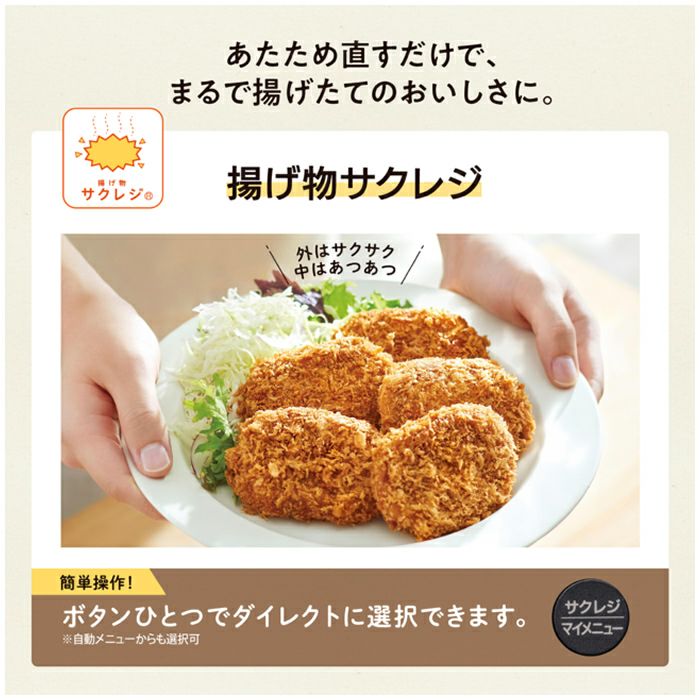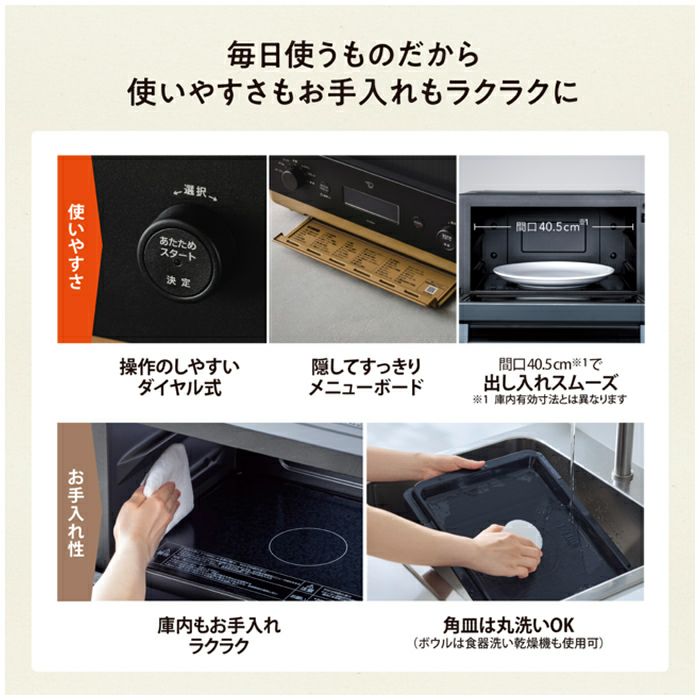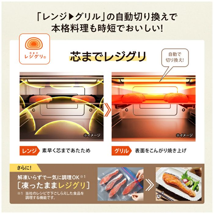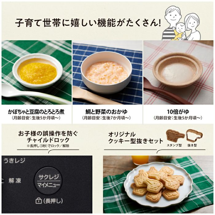 時短で手軽、しかもおいしく調理できる26Lタイプのオーブンレンジ。毎日の調理にとことん使ってもらいたい。だからこそこだわった、 新しい発想の機能と使いやすさ。STAN.のオーブンレンジで、あなたの暮らしにスタンバイ。◎本格的な料理を時短で 「レンジ→グリル」機能を自動で切り換え!時短で本格料理ができる「芯までレジグリ」マイクロ波を透過する陶磁器(セラミック)製の角皿。・「リバース機能」 「レンジ→グリル」だけではなく、「グリル→レンジ」の設定も可能。手動で切り換えできます。■下ごしらえした冷凍食品※も一気にそのまま調理!「凍ったままレジグリ」 下味をつけた冷凍食品を、凍ったまま角皿に乗せて焼くだけ。焼き上がるまで一気に調理できます。※ メーカーのレシピで下ごしらえした食品を調理する機能です。市販の冷凍食品はパッケージなどに記載されている方法で加熱してください。◎温めムラをおさえて、全方位から加熱する 新発想!※ 食材を庫内で浮かせて調理する「うきレジ」※ 国内家庭用電子レンジとして 食材を浮かせて加熱する技術 2022年7月27日発表(メーカー調べ)・多彩に使える付属の「ボウル」 ボウルは容器ごと食卓へ持っていけるので、テーブルセッティングの手間も少なく、後片づけもラクラク。また料理の下ごしらえや、食材の保存にも活用できます。◎揚げたてのようなおいしさ コロッケや天ぷらなどの買ってきたお惣菜や冷めてしまった揚げ物もレンジ機能で素早くあたため、グリル機能で表面をサクッとおいしく!「揚げ物サクレジ」・簡単に選べる「サクレジ」ボタン ボタンひとつで「サクレジ」メニューを簡単に選択できます。■レパートリー広がる「深型焼きプレート」・両面が一度に調理できる 付属の深型焼きプレートを使えば、手間をかけずに大皿の調理が可能。※深型焼きプレートは熱に弱いものの上に置かないでください。■離乳食・お子様と一緒に・子どもの成長に合わせた離乳食が作れる「STAN.別冊20メニューのレシピブック」 レシピサイトSTAN.kitchenではSTAN.オリジナル20レシピを含む、120種のレシピをご用意しております。・子育てにうれしいSTAN.ならではの機能、“離乳食用ゆで野菜”メニューを搭載・お子様と一緒に作って楽しい オリジナルクッキー型抜きセットが付属しています。■その他のおいしさについて・選べる解凍 全解凍・半解凍が選べる解凍コース。ムラを抑えて加熱するので、下ごしらえがスムーズに。・料理の幅が広がる 100℃~高火力250℃の本格オーブン調理(220℃~250℃の運転時間は約5分です。その後は自動的に210℃に切り換わります)・こんがり焼き目がつけられる グリル調理 トーストは、仕上がりを3段階で調整。冷凍した食パンもトースト(裏返し必要)できます。◎出し入れスムーズ 大皿の出入れもスムーズな「間口40.5cm」※(※ 庫内有効寸法とは異なります。)◎カンタンお手入れ お手入れ簡単 ワイド庫内でいつもキレイに。■脱臭機能つき 庫内についたニオイや汚れを高温で分解します。■総庫内容量:26L■センサー種類:赤外線センサー・温度センサー■レンジ 自動出力:1,000W 最大約3分間(600W) 手動(相当)出力:1000W・600W・500W・300W・150W 解凍:全解凍/半解凍■オーブン 温度:100~250℃ 発酵:30・35・40・45℃ 加熱方式:上下ヒーター式 ヒーター:上ヒーター:管ヒーター(2本) 下ヒーター:シーズヒーター■グリル 加熱方式:上ヒーター式/両面グリル ヒーター:管ヒーター2本/[上]管ヒーター(2本) [下]レンジ加熱■取説掲載レシピ数(自動メニュー数):120(47)■トースト(自動):1~4枚(裏返し必要)■庫内:LED庫内灯 2ヵ所■液晶:白黒反転液晶■お手入れ 庫内コーティング:側面・背面:シリコーンコート メニュー:脱臭■付属品:・ボウル(耐熱ガラス製) 1個 約1.1kg 内径: 直径212mm、容量: 2.4L・角皿(セラミック製)1枚 約1.8kg 400mm×304mm・深型焼きプレート 1枚 約0.6kg 374mm×278mm・オリジナルクッキー型抜きセット 1セット・取扱説明書兼お料理ノート・レシピブック■本体外径寸法(mm):幅490×奥行399×高さ370■設置寸法:背面0cm、左右各2cm、上面10cm 以上開けてください。■庫内有効寸法(mm):幅378×奥行309×高さ201(間口40.5cm)■本体質量(本体のみ)(約kg):17.5■消費電力 電源:AC100V(50/60Hz) レンジ:消費電力:1,420W オーブン:ヒーター出力/消費電力:1,275W/1,295W グリル:ヒーター出力/消費電力:1,000W/1,020W■目標年度2008年度 省エネ基準達成率:100% 年間消費電力量:73.4kWh/年 レンジ機能 58.2kWh/年 オーブン機能 15.2kWh/年 待機時 0.0kWh/年 区分:B