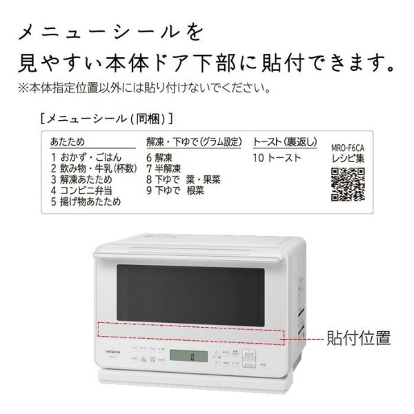 他の画像を見る 送料無料・代引き手数料無料・延長保証申込可 日立 27L オーブンレンジ MRO-F6CA-W ホワイト 当店特別価格 ¥ 49,980 税込 送料無料・代引き手数料無料・延長保証申込可 カートに入れる お気に入りに登録する