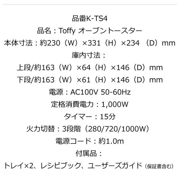 他の画像を見る 送料無料・代引き手数料無料 Toffy トフィー 縦型 2段 オーブントースター K-TS4-AW アッシュホワイト ラドンナ 当店特別価格 ¥ 7,280 税込 在庫切れ 送料無料・代引き手数料無料 詳細を見る お気に入りに登録する