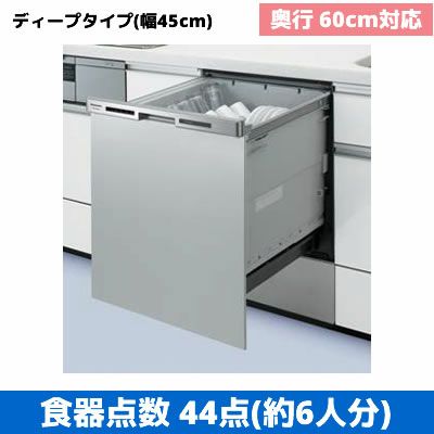 ■キッチン奥行60cm以上対応■フロントオープンに比べて開け閉め簡単。キッチンの導線もスムーズです。■食洗機が苦手にしていた汚れにも強い、プラネットアーム洗浄とバイオパワー除菌。■上下2段ノズルのプラネットアーム洗浄で、食器のすみにこびりついたガンコ汚れも吹き飛ばします。■適温で最大限に活性化した洗浄酵素パワーで洗浄前に汚れを溶かすバイオパワー除菌。■油やごはんのこびりつき汚れを洗浄前に溶かして浮かす、革新システム。■上カゴが左右、自由にスライド可能。食器セットの順番をきにする面倒がなくなりました。■食器の仕分けは不要です。場所に悩まず、自由にセット。■温度と湿度も抑えたソフト排気温システム■使いやすくてラクなフルトップオペレーション■図書館内レベルの低運転音約41dB■LEDインジゲーター■ラクラク開閉ドア■キャビネットの取っ手ラインと調和する、スリムデザインだから仕上がりもきれい。■万一の水漏れにも強いアクアプロテクター■幅45cm ディープタイプ■適合キッチン奥行:60cm以上■おすすめキッチン間口:225cmぐらいから■食器点数:約6人分、44点※設置後、本機種の特性上、操作部がワークトップの前垂れ面よりも突出する場合があります。あらかじめご了承ください。